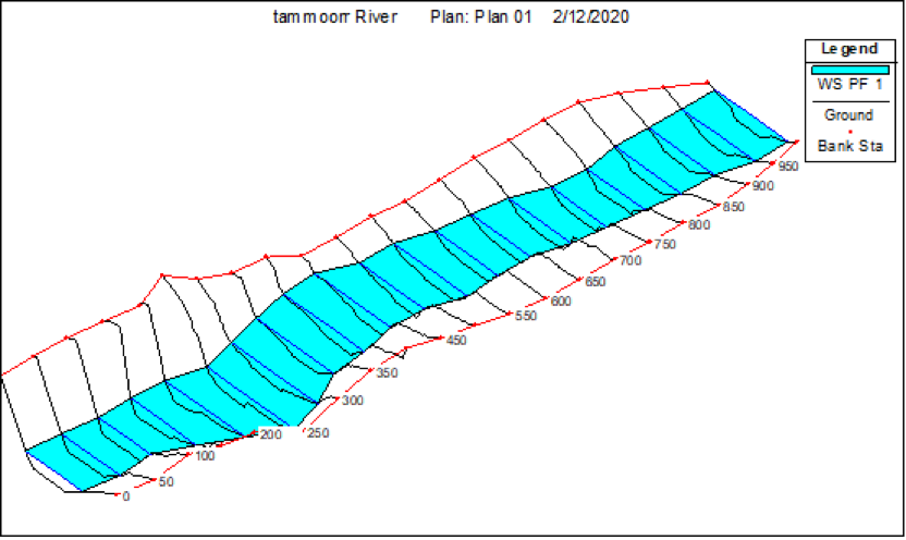 Figure: Cross Section at bridge axis as simulated by HEC-RAS for 100 years flood
